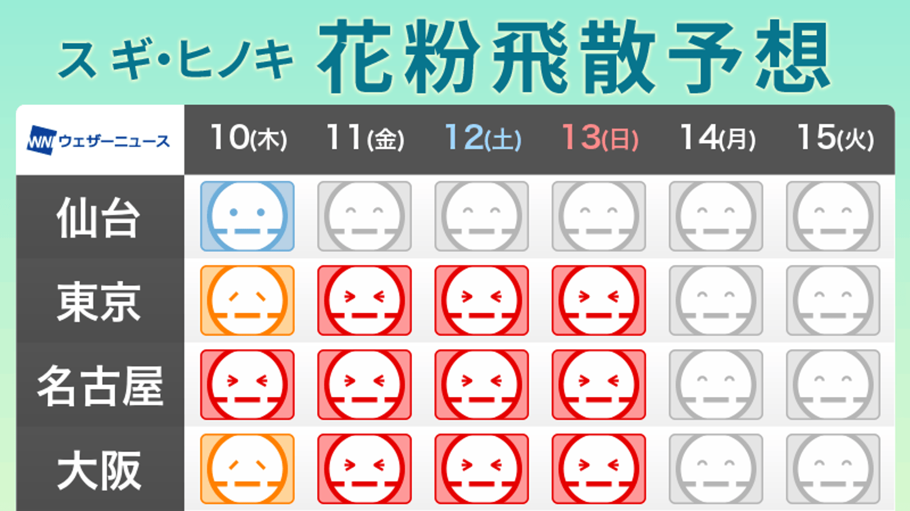 本格的な花粉の飛散シーズンを迎えている関東や東海、西日本では、大量飛散に注意が必要です。